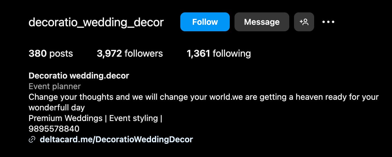 മലപ്പുറം തിരൂരങ്ങാടി സ്വദേശികളായ അൻഫാസ് ,മിഷാൽ,അമൽ എന്നിവർ ചേർന്ന് 2022 ഓഗസ്റ്റ് മാസത്തിൽ തുടക്കമിട്ട സംരംഭമാണ് Decoratio wedding.decor.വിവാഹം ,ജന്മദിനം,ബ്രൈഡൽ ഷവർ എന്നിങ്ങനെ എല്ലാവിധ ഇവന്റുകളും ഏറ്റെടുത്ത് നടത്തുന്നു. തുടക്കത്തിൽ ഡെക്കറേഷൻ വർക്കുകൾ മാത്രമാണ് ചെയ്തിരുന്നത് എങ്കിൽ ഇപ്പോൾ കേരളത്തിലുടനീളം എല്ലാ വിധ ഇവന്റുകളും മുഴുവനായും ഏറ്റെടുത്ത് മാനേജ് ചെയ്യുന്നു.