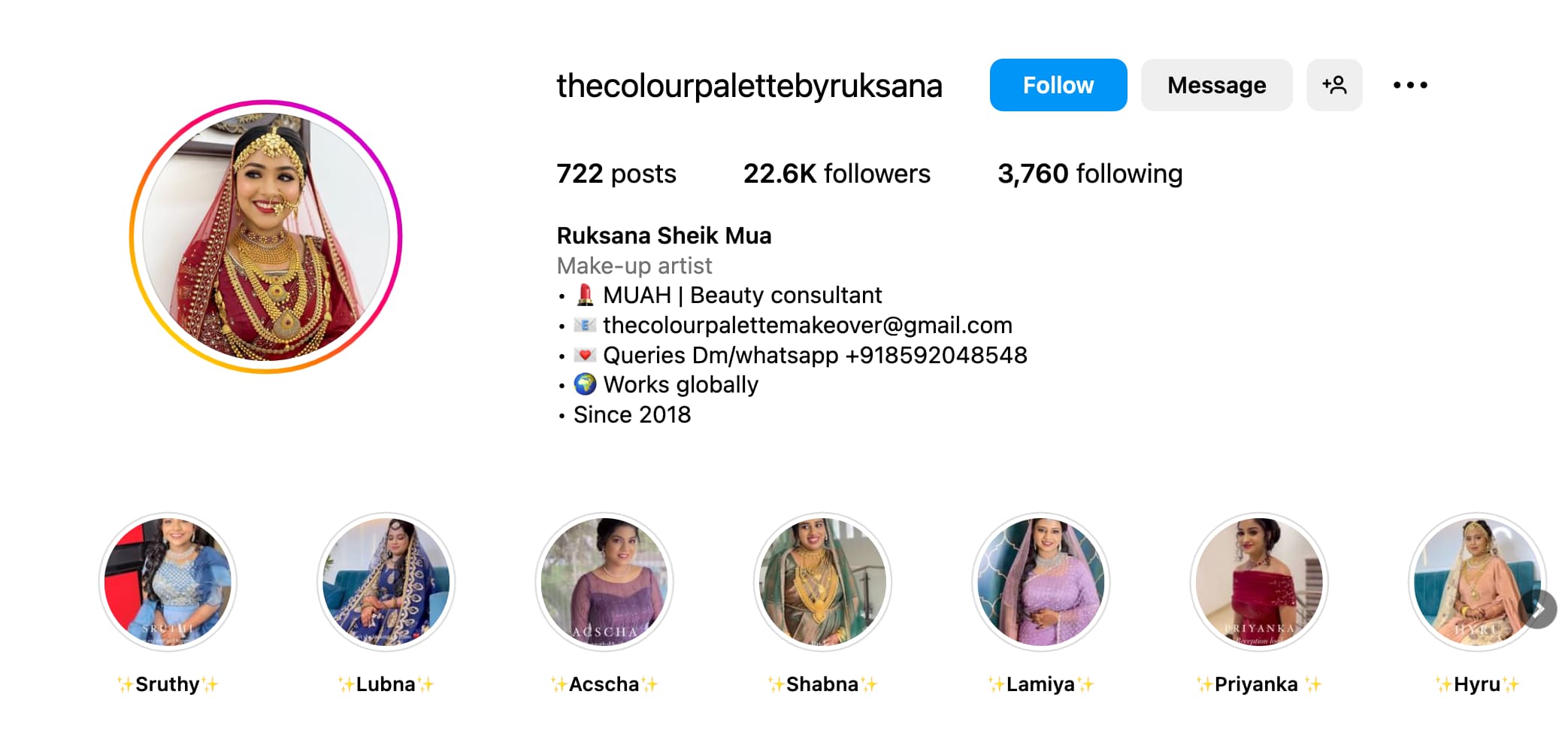 കൊല്ലം സ്വദേശിനി റുക്‌സാന ഷെയിഖിന്റെ സംരംഭം ആണ് The Colour Palette ( thecolourpalettebyruksana ). ബ്രൈഡൽ ,പോർട്ട് ഫോളിയോ , എഡിറ്റോറിയൽ ,ഫോട്ടോഷൂട്ട് ,പാർട്ടി മേക്കോവർ എന്നിങ്ങനെയുള്ള എല്ലാ തരാം മേക്കോവർ വർക്കുകളും ചെയ്തു നൽകുന്നു.Makeup Artistry എന്ന തന്റെ ഏറ്റവും വലിയ സ്വപ്നം പൂർത്തിയാക്കി കൊല്ലം മേവരത്ത് മേക്കോവർ സ്റ്റുഡിയോ ആരംഭിച്ച റുക്‌സാന ഗ്ലോബലി എല്ലായിടത്തും സർവ്വീസ് പ്രൊവൈഡ് ചെയ്യുന്നുണ്ട്. ബി എസ് സി നഴ്‌സിംഗ് പഠനം ഉപേക്ഷിച്ചു തന്റെ പാഷൻ ഫോളോ ചെയ്തപ്പോൾ പലരും കുറ്റപ്പെടുത്തി എങ്കിലും എടുത്ത തീരുമാനം തെറ്റിയില്ല..ഹാർഡ് വർക്കും ഡെഡിക്കേഷനും കൊണ്ട് തന്റെ സ്വപ്നം സഫലീകരിക്കാൻ സാധിച്ചു.എല്ലാത്തിനും സപ്പോർട്ട് ആയി കൂടെ ഉള്ള ഹസ്ബൻഡും , ഉമ്മയും ആണ് റുക്‌സാനയുടെ വിജയത്തിൽ പ്രധാന പങ്കു വഹിച്ചത്..