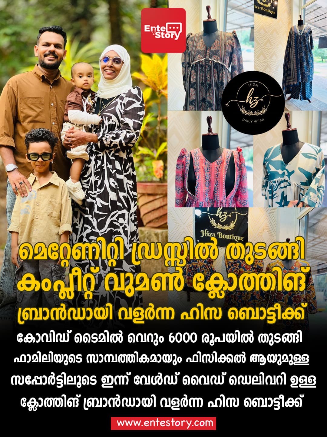 പ്രെഗ്നൻസി പിരീഡിൽ കസ്റ്റമൈസ്ഡ് മെറ്റേണിറ്റി ഡ്രസ്സ് കിട്ടാനുള്ള ബുദ്ധിമുട്ട് മനസ്സിലാക്കിയ കോഴിക്കോട് കൊയിലാണ്ടി സ്വദേശിനി സുഹറ തുടക്കമിട്ട ബ്രാൻഡ് ആണ് @hiza_maternity_store_ .മെറ്റേണിറ്റി ഡ്രസ്സിൽ തുടങ്ങി ഇന്ന് വുമൺ ക്യാഷ്വൽ & ഡെയ്ലി വിയർ ഉൾപ്പടെയുള്ള ഹിസ ബൊട്ടീക്ക് എന്ന ഒരു കംപ്ലീറ്റ് വുമൺ ക്ലോത്തിങ് ബ്രാൻഡായി വളർന്നു.Xs മുതൽ 7xl വരെ ഉള്ള സൈസുകളിൽ കസ്റ്റമൈസ്ഡ് ഡ്രസ്സുകൾ നൽകുന്നു എന്നതാണ് ഹിസ ബൊട്ടീക്കിന്റെ പ്രത്തേകത.ഓർഡർ അനുസരിച്ചു വേൾഡ് വൈഡ് ഡെലിവറി സൗകര്യം ലഭ്യമാണ്….