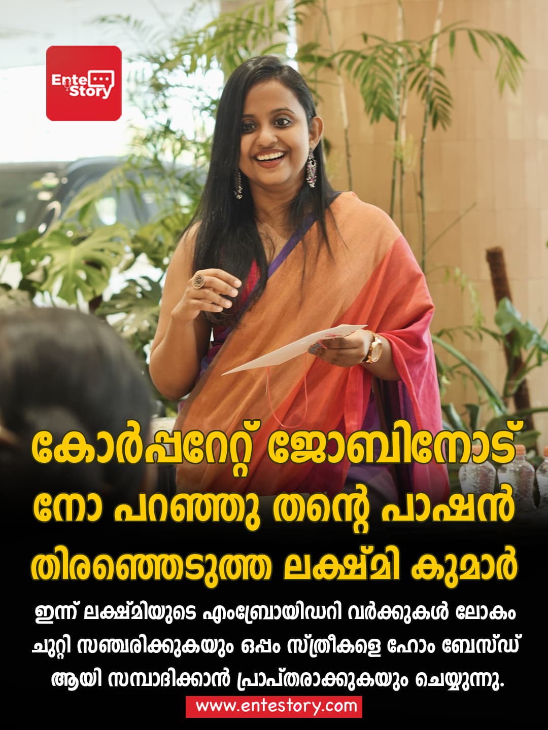 ലളിതമായ സൂചിയും നൂലും ഉപയോഗിച്ച് തുടങ്ങി മികച്ച പ്രതിമാസ വരുമാനം ഉണ്ടാക്കുന്ന ഒരു ബ്രാൻഡ് കെട്ടിപ്പടുക്കുന്നതുവരെയുള്ള ലക്ഷ്മിയുടെ യാത്ര, ക്രിയേറ്റിവിറ്റി ഒരു കരിയർ കൂടെ ആക്കാം എന്ന് തെളിയിക്കുന്നു.