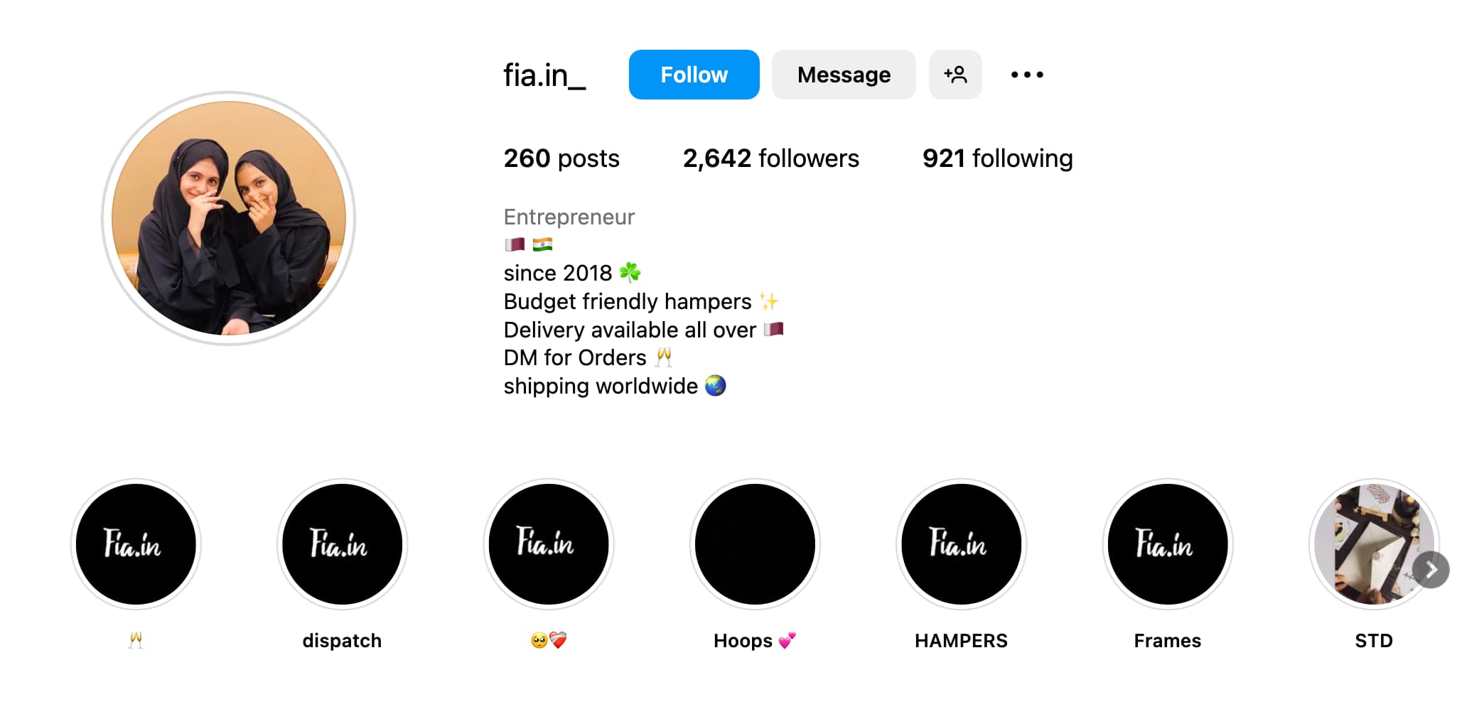 കണ്ണൂർ തലശ്ശേരി സ്വദേശിനി സുനൈനയുടെ സംരംഭങ്ങളാണ് fia.in_/ & cake_line___ . Fia.in_ ലൂടെ വിവിധ തരം ഫ്രയിമുകൾ ,ഹാമ്പറുകൾ , എംബ്രോയിഡറി ഹൂപ്സ് ,നികാഹ് നമ ,സേവ് ദി ഡേറ്റ് എന്നിങ്ങനെ വിവിധങ്ങളായ ക്രാഫ്റ്റ് ഉത്പന്നങ്ങൾ നിർമ്മിച്ച് നൽകുന്നു.പേര് സൂചിപ്പിക്കുന്നത് പോലെ തന്നെ cake_line___ ലൂടെ വിവിധ തരം കേക്കുകൾ നിർമ്മിച്ച് നൽകുന്നു.പ്ലസ്ടു പഠന കാലത്ത് കേക്ക് ബേക്കിങ്ങിലൂടെ ആയിരുന്നു തുടക്കം.പിന്നീട് ക്രാഫ്റ്റ് ഉത്പന്നങ്ങളും നിർമ്മിച്ച് നൽകുവാൻ തുടങ്ങി.ഇപ്പോൾ കുറച്ചു കാലത്തേക്ക് ഖത്തറിലേക്ക് ഷിഫ്റ്റ് ചെയ്തു എങ്കിലും തന്റെ പാഷൻ നിർത്തിയില്ല.ഇപ്പോൾ ഖത്തറിൽ തന്റെ ബിസിനസ്സ് തുടരുകയാണ് സുനൈന.ഓർഡർ നൽകിയാൽ ഫ്രയിമുകൾ , ഹാമ്പറുകൾ , എംബ്രോയിഡറി ഹൂപ്സ് ,നികാഹ് നമ ,സേവ് ദി ഡേറ്റ് എന്നിങ്ങനെയുള്ള ക്രാഫ്റ്റ് ഉത്പന്നങ്ങൾ നിർമ്മിച്ച് ഖത്തറിൽ എവിടെയും ഡെലിവറി ചെയ്യും.ഇടക്ക് കേക്ക് ബേക്കിങ് നിർത്തി ക്രാഫ്റ്റ് നിർമ്മാണത്തിൽ മാത്രം ശ്രദ്ധ ചെലുത്തി എങ്കിലും ഇപ്പോൾ കേക്ക് ബേക്കിങ്ങും വീണ്ടും സ്റ്റാർട്ട് ചെയ്തിട്ടുണ്ട്.