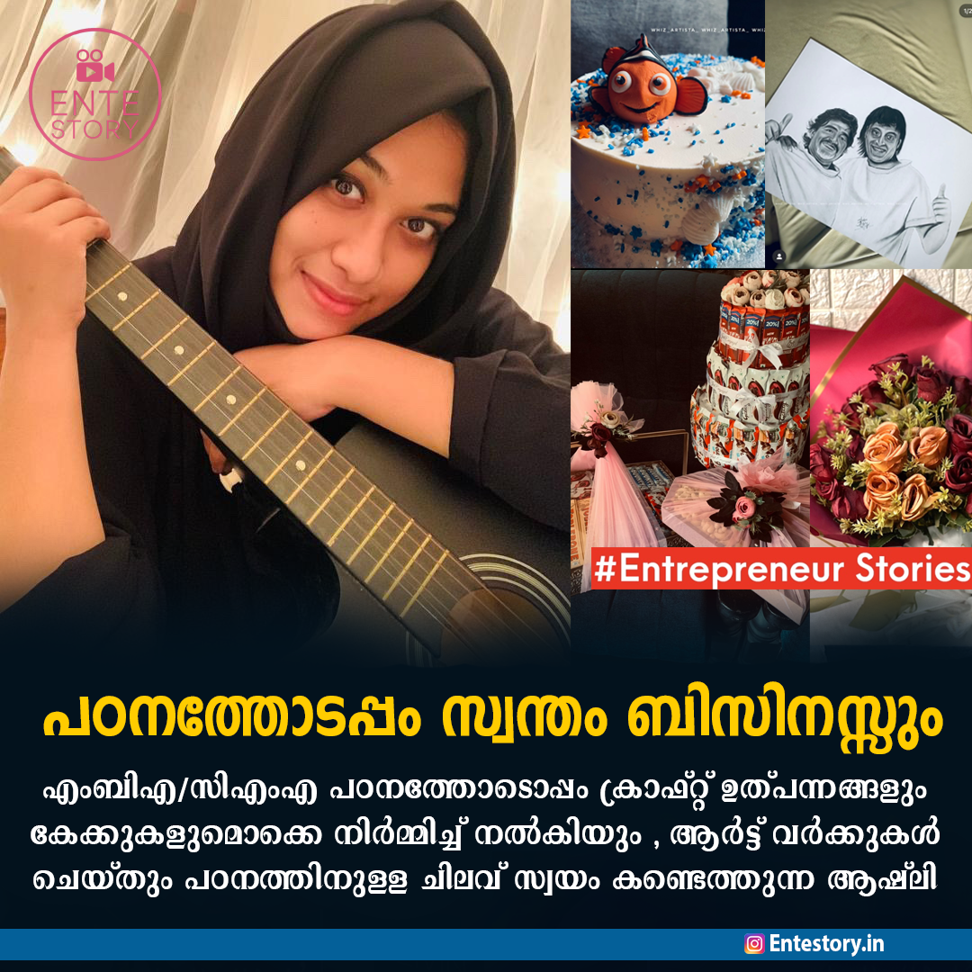 തൃശൂർ സ്വദേശിനി ആഷ്‌ലി തന്റെ പഠനത്തോടൊപ്പം തന്നെ ക്രാഫ്റ്റ് വർക്കുകൾ ചെയ്തു നൽകിയും ,കേക്ക് ,കുക്കീസ് ,പുഡ്ഡിംഗ് ഒക്കെ നിർമ്മിച്ചും ,pencil portrait,painting,Iillustrations  പോലുള്ള ആർട്ട് വർക്കുകൾ ചെയ്തും തന്റെ പഠനത്തിനായുള്ള ചിലവ് സ്വയം കണ്ടെത്തുന്നു.Whiz_Artista എന്ന ഹാൻഡിൽ വഴിയാണ് ആഷ്‌ലി തന്റെ ബിസിനസ്സ് റൺ ചെയ്യുന്നത് .ഫോട്ടോ ഫ്രെയിം , സേവ് ദി ഡേറ്റ് ,സ്ക്രാപ്പ് ബുക്ക്സ് , ഹാംപെർസ്‌ പോലുള്ള ക്രാഫ്റ്റ് വർക്കുകളും ആർട്ട് വർക്കുകളും ഇന്ത്യ കൂടാതെ വിദേശ രാജ്യങ്ങളിലേക്കും ചെയ്തു നൽകുവാൻ സാധിക്കുന്നുണ്ട്.ഇപ്പോൾ കസിനുമായി ചേർന്ന് കൊണ്ട് റെന്റൽ ജൂവലറി ബിസിനസ്സും പുതുതായി സ്റ്റാർട്ട് ചെയ്തു.അതിനുള്ള കാപിറ്റൽ ഇൻവെസ്റ്റ്മെന്റും Whiz_Artista വഴി നിർമ്മിച്ചെടുക്കുവാൻ കഴിഞ്ഞു.22 വയസുള്ള ആഷ്‌ലി CMA യും അതിനൊപ്പം എംബിഎ യും പഠിക്കുന്നതിന്റെ ഇടയിൽ ആണ് ഈ ബിസിനസ്സുകൾ എല്ലാം മാനേജ് ചെയ്യുന്നത്.