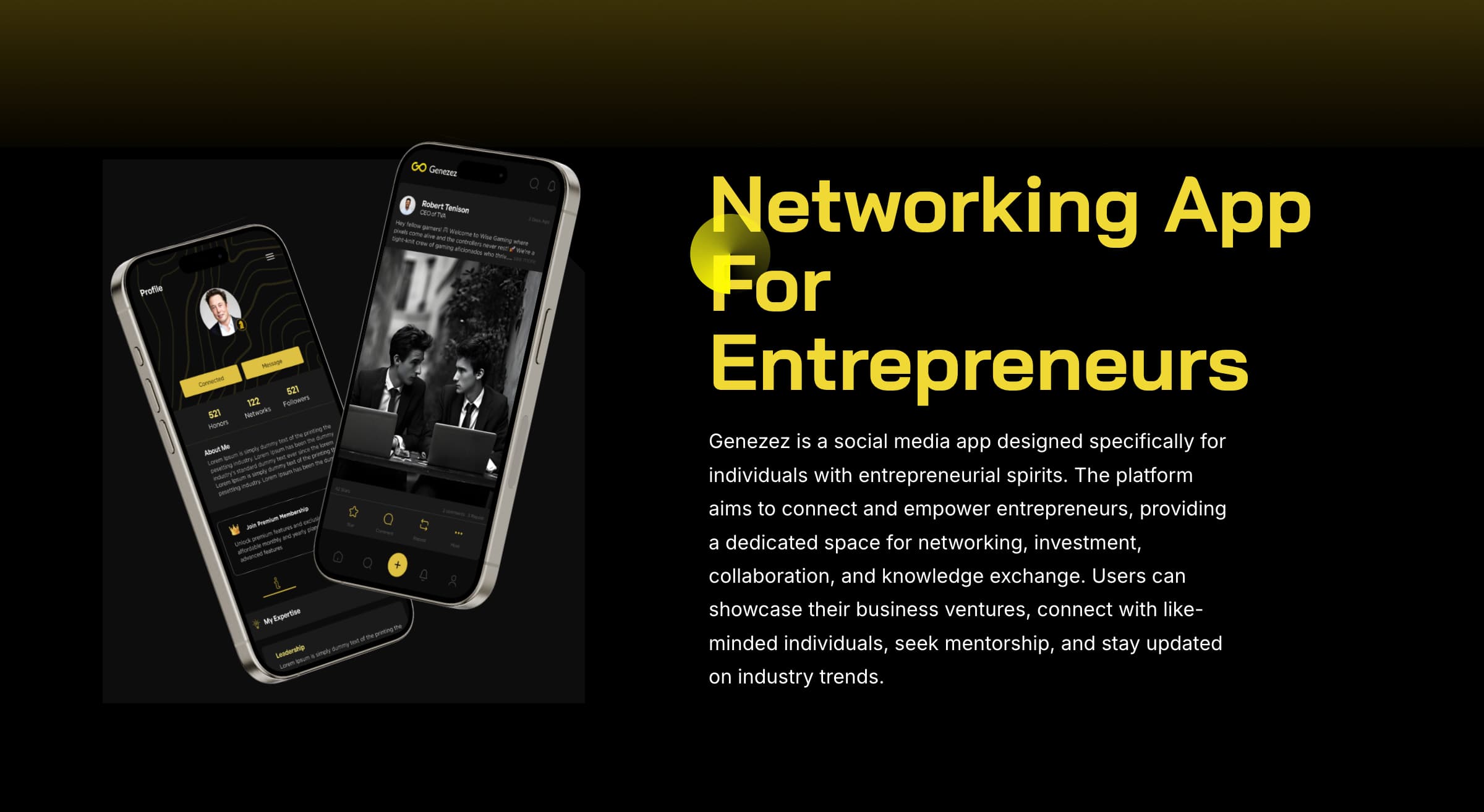 Genezez വെറും ഒരു സോഷ്യൽ മീഡിയ പ്ലാറ്റ്ഫോം മാത്രമല്ല പരസ്പരം സഹകരിച്ചു സഹായിച്ചു മുന്നേറുന്ന ഒരു കൂട്ടം ആളുകളുടെ ഇടം ആണ്.നിങ്ങൾക്ക് ആഗോള സംരംഭകരുമായി ബന്ധപ്പെടാനും ആശയങ്ങൾ പങ്കിടാനും മാർഗനിർദേശം തേടാനും നിങ്ങളുടെ സംരംഭത്തെ അടുത്ത ഘട്ടത്തിലേക്ക് കൊണ്ടുപോകാനാകുന്ന ഡാറ്റാ ആക്സസ് ചെയ്യാനും കഴിയുന്ന ഒരു ഇടം. സമാന ചിന്താഗതിക്കാരായ വ്യക്തികളുമായി നെറ്റ്വർക്ക് ചെയ്യാനോ നിക്ഷേപ അവസരങ്ങൾ നേടാനോ അല്ലെങ്കിൽ ഏറ്റവും പുതിയ വ്യവസായ ട്രെൻഡുകളെക്കുറിച്ച് അപ്ഡേറ്റ് ചെയ്യാനോ നിങ്ങൾക്ക് Genezez ലൂടെ കഴിയുന്നു.മാത്രമല്ല പരിചയസമ്പന്നരായ സംരംഭകരുടെ അറിവുകളും എക്സ്പീരിയൻസും ഉപയോക്താക്കൾക്ക് പ്രയോജനപ്പെടുത്താൻ കഴിയുന്ന ഒരു പഠന കേന്ദ്രമായും Genezez പ്രവർത്തിക്കുന്നു.Genezez ഗൂഗിൾ പ്ലേയ് സ്റ്റോറിലും ,ആപ്പ് സ്റ്റോറിലും ലഭ്യമാണ്.കൊച്ചി ആസ്ഥാനമായുള്ള WeCodeLife എന്ന ഐടി കമ്പനിയുടെ ഫൗണ്ടർ ആയ ഐജു ടി ബിജുവും കോ ഫൗണ്ടർ ആയ അതുൽ പീറ്ററും ആണ് Genezez എന്ന പ്ലാറ്റ്ഫോമിന് പിന്നിൽ.
