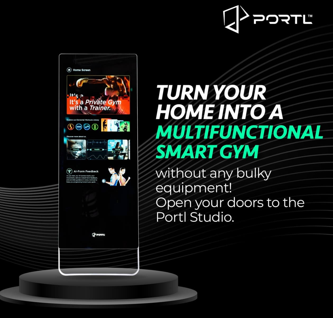 Portl Fitness Studio ഇന്ത്യയിലെ ആദ്യത്തെ പേഴ്സണൽ ട്രെയിനിങ് മിറർ ആണ്.ഹൈദരാബാദ് സ്വദേശികളായ ഇന്ദ്രനീൽ ,വിശാൽ ,അർമാൻ എന്നിവരുടെ സ്റ്റാർട്ടപ്പ് ആണ് Portl Fitness.ആർട്ടിഫിഷ്യൽ ഇന്റലിജൻസ് സഹായത്തോടെ പ്രവർത്തിക്കുന്ന ഈ മിറർ ഓരോരുത്തർക്കും ആവശ്യമായ ഫിറ്റ്നസ് ക്ലാസ്സുകളും വർക്ഔട്ട് നിർദ്ദേശങ്ങളും നൽകുന്നു.അതായത് ഈ AI-powered സ്ക്രീൻ വീട്ടിൽ തന്നെ ജിം ഒരുക്കുന്നു.സ്ക്രീനിലൂടെ നിങ്ങൾക്ക് ആവശ്യമായ നിർദ്ദേശങ്ങൾ ലഭിക്കും.ഷാർക് ടാങ്ക് ഇന്ത്യയിൽ പങ്കെടുത്തു 1.5 കോടി രൂപയും ഈ സ്റ്റാർട്ടപ്പ് നേടി.